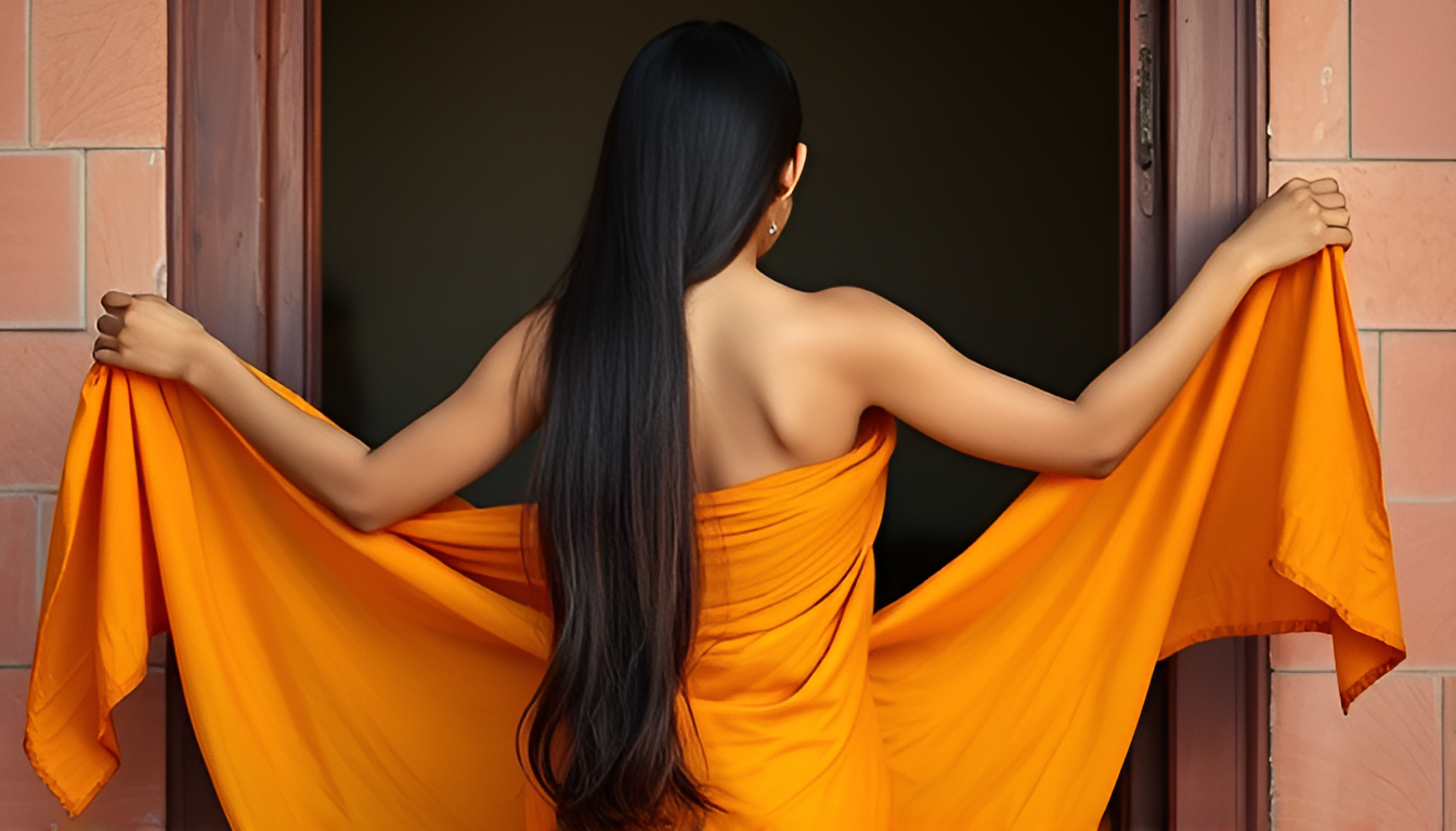 Bangladeshi Girl Draped In Flowing Saffron Grace