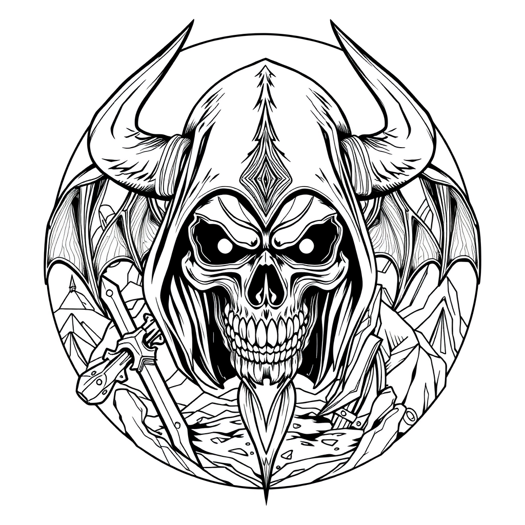 1 userUnleash your dark side with 'Coloring in the Name of Evil' - an AI-powered generator creating sinister, fantasy-horror coloring pages. Dive into a world of skulls, reapers, and otherworldly creatures with intricate black and white line art.