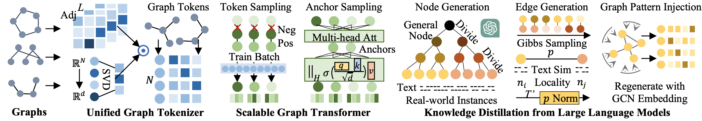 - We propose a unified graph tokenizer to adapt our graph model to generalize well on unseen graph data, even when the underlying graph properties differ significantly from those encountered during training.
