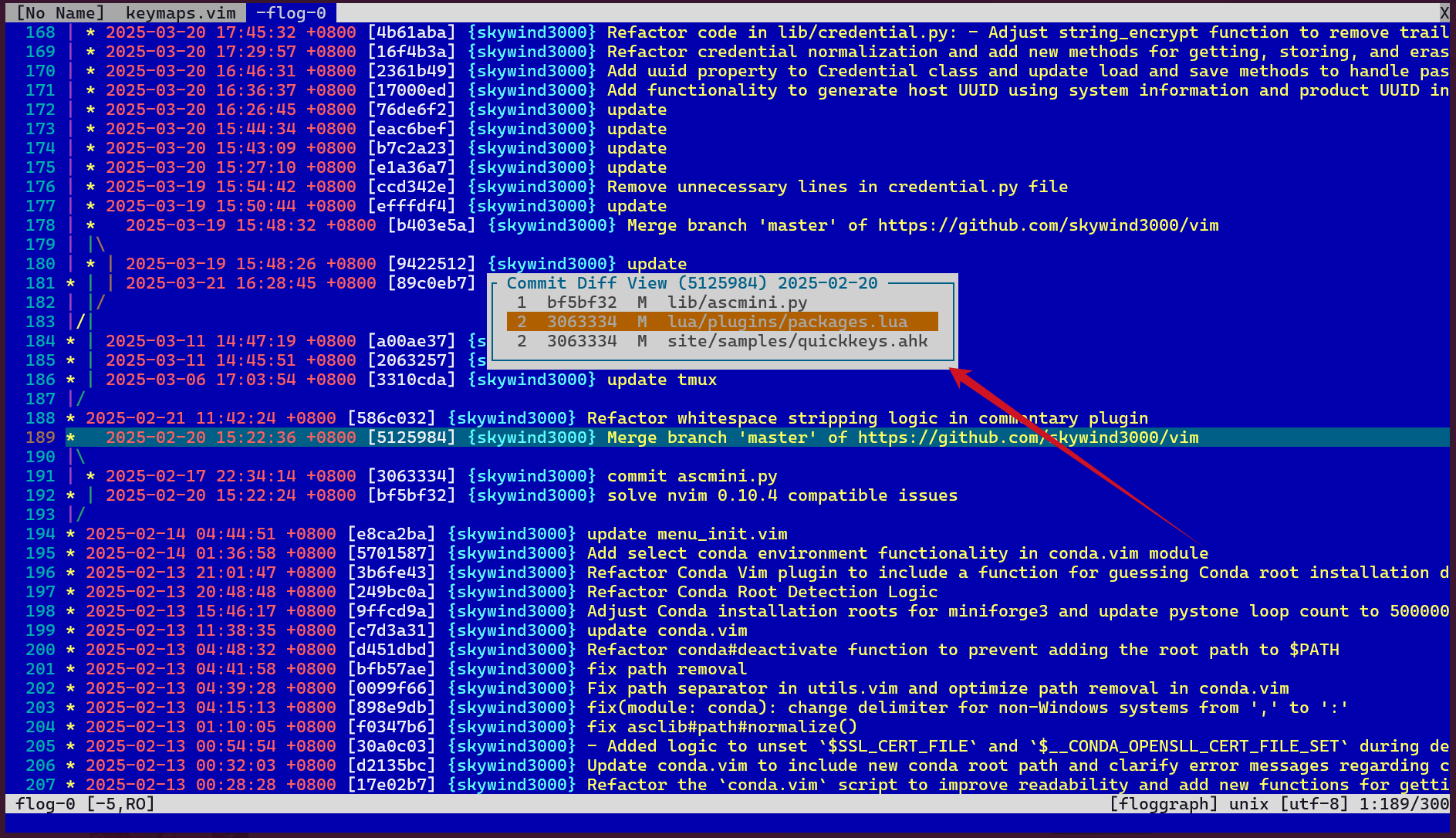 这个插件会自动提取你光标所在行的 commit hash 然后在浮窗里展开该 commit 的改动列表,你按回车就弹出比较页面: