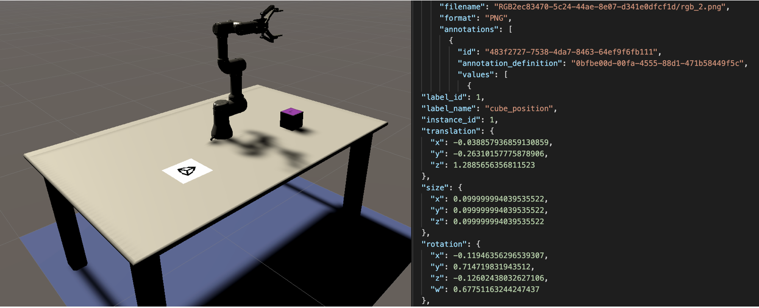 This tutorial will go through the steps necessary to perform pose estimation with a UR3 robotic arm in Unity. You’ll gain experience integrating ROS with Unity, importing URDF models, collecting labeled training data, and training and deploying a deep learning model. By the end of this tutorial, you will be able to perform pick-and-place with a robot arm in Unity, using computer vision to perceive the object the robot picks up.